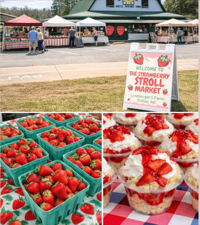 In Dallas, North Carolina…the “Strawberry Stroll” kicks off April 18th at Lineberger’s Farm as one of the most memorable events of the spring in this town just west of Charlotte! Running from 9:00 AM to 5:00 PM at 906 Dallas Stanley Hwy, this full-day event is packed with fresh strawberries and farm fun. You can head out into the fields for you-pick strawberries, then stroll through a busy vendor market filled with local goods. Food trucks like King of Fire and Lilly Monster Burritos keep things going, along with sweet stops like Fizzy Creations, Sunset Slush, and Crumbs & Co. Bakery. Live music by Raphael Graves plays from 11 AM to 2 PM while you shop, eat, and relax. Lineberger’s Farm is a fourth-generation family farm known for pick-your-own crops and its farm store. Expect strawberry treats, photo spots, and a laid-back spring day outdoors at one of North Carolina's favorite little family farms!